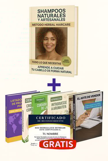 🎨 Con este libro conocerás los secretos para crear tu negocio de Shampoos y Acondicionadores Naturales desde la comodidad de tu casa, ahorrándote entre 300 a 500 dólares que cuesta un curso presencial.