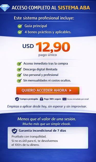 👉 Profesionales de ABA que necesitan protocolos claros y estructurados para acelerar el progreso de sus pacientes.