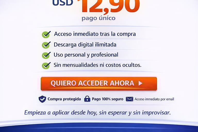 Material 100% digital en formato PDF, de acceso inmediato y uso ilimitado. Imprímelo, úsalo en tablet o celular, compártelo con tu equipo.